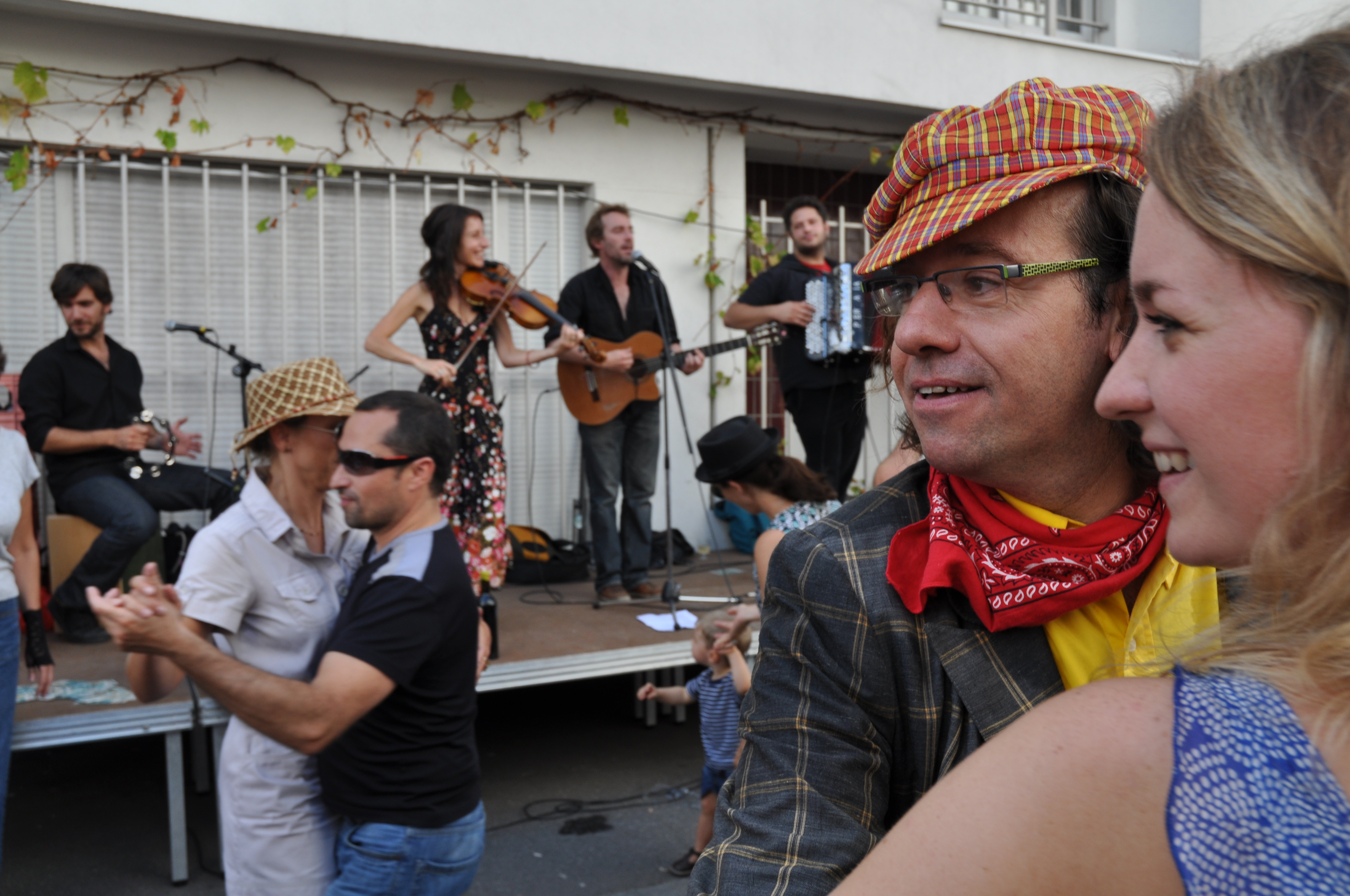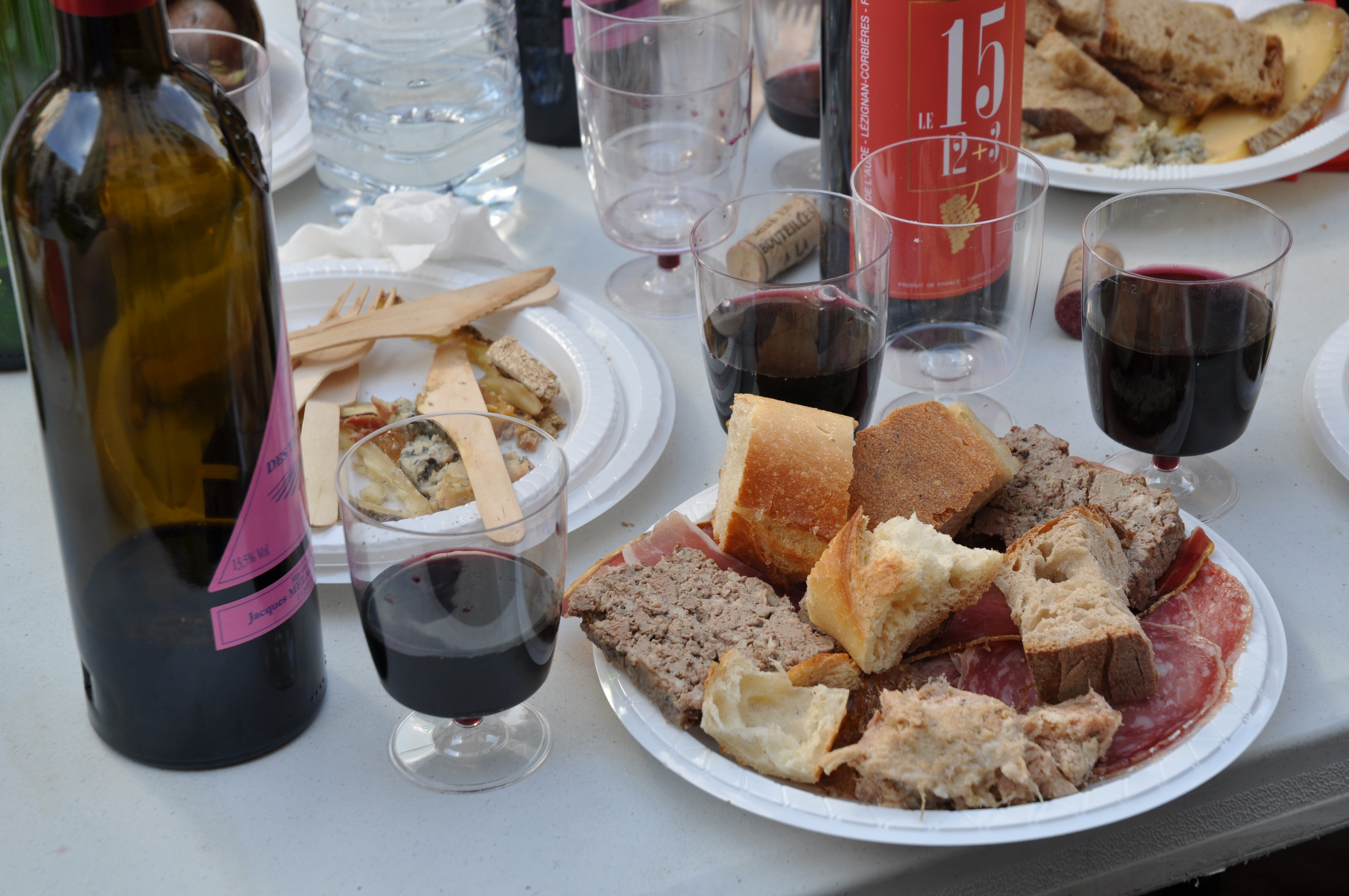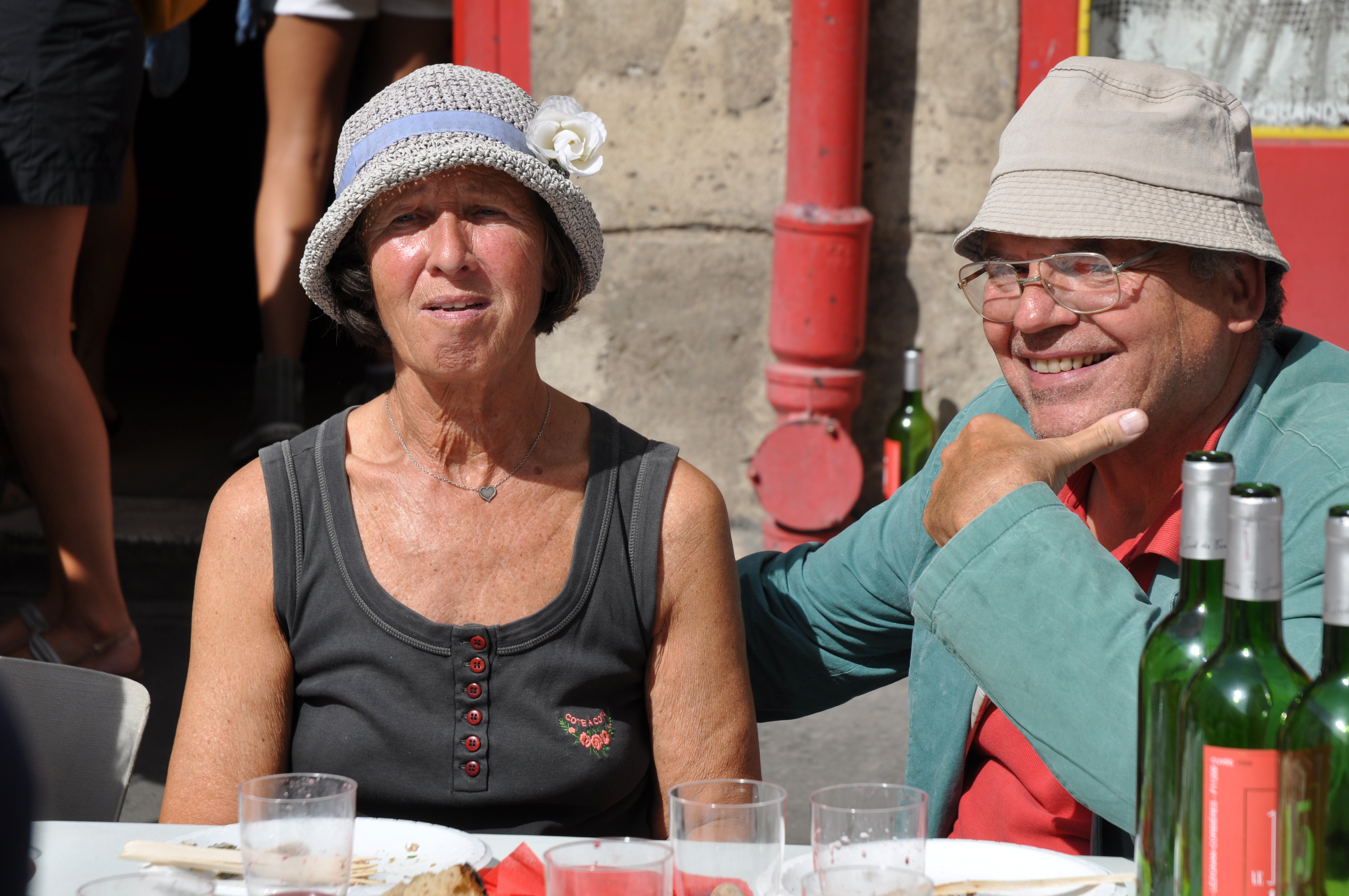 On y déjeune à la bonne franquette, assis comme on peut, on trinque entre amis ou voisins, comme à la campagne, on vendange si on a envie de grimper sur l’échelle, on profite de la musique, on danse si le cœur vous en dit.