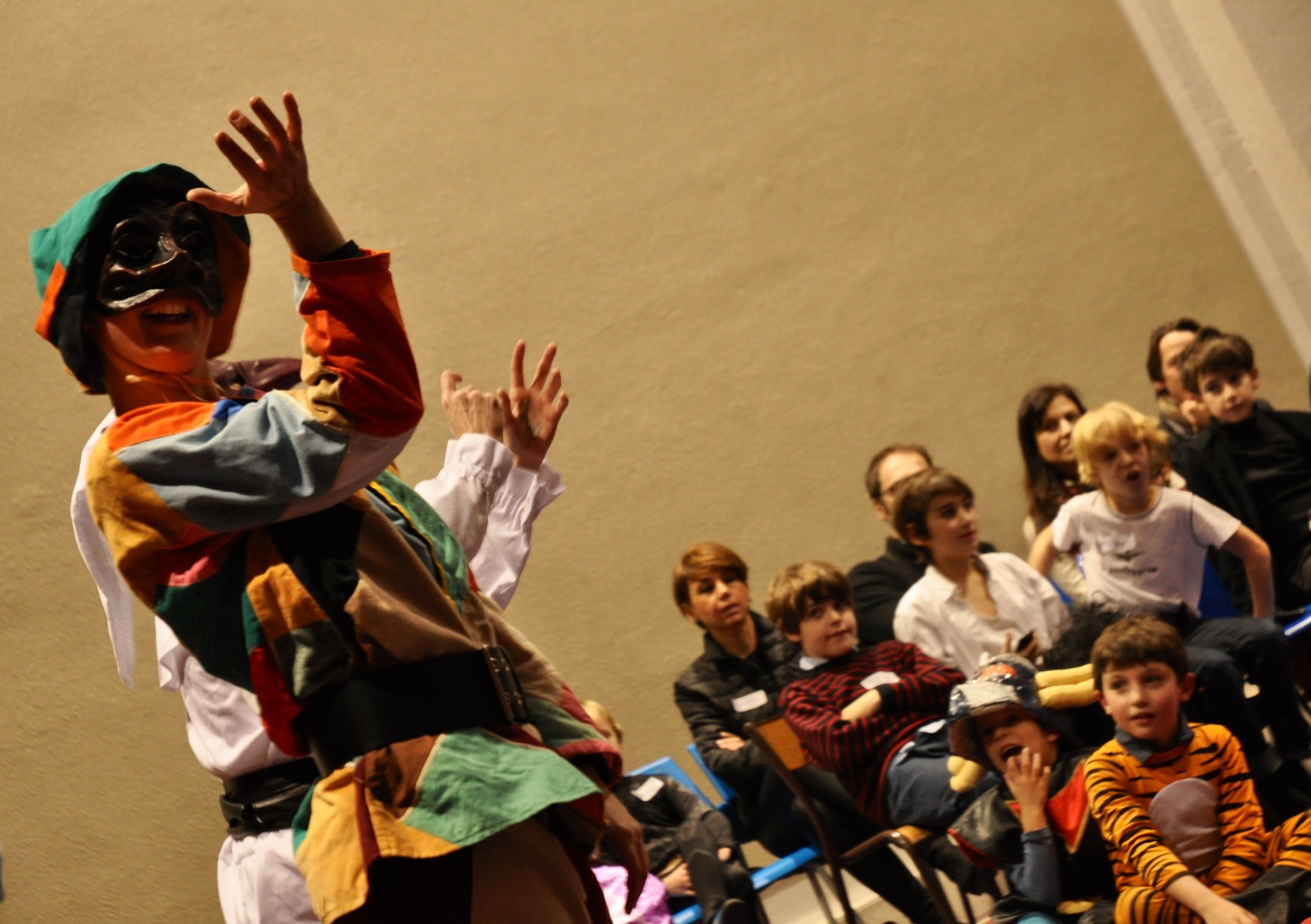 Vite vite c’était déjà l’heure de s’aider à enfiler nos déguisements, parfaire les maquillages, rire de la justesse de tel et tel petit détail. Que de rires en découvrant les déguisements imaginés par les autres, puis le joli spectacle de pantomime avec Polichinelle et Arlequin, la musique, les danses,les bonnes choses à picorer, les serpentins colorés. Autant de jolies images qu’on a envie de garder dans son cœur.