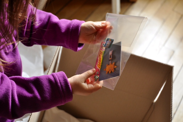 Le facteur nous a fait quelques misères, malgré tous les efforts de Laurence pour expédier le colis à temps. Peu importe, on a trouvé la belle surprise aujourd’hui, à notre retour de la montagne, et mademoiselle, sa polaire encore sur le dos, était plus que ravie de chercher son cadeau au fond de ces magnifiques nuages blancs (et elle n’était pas la seule, j’avoue)…