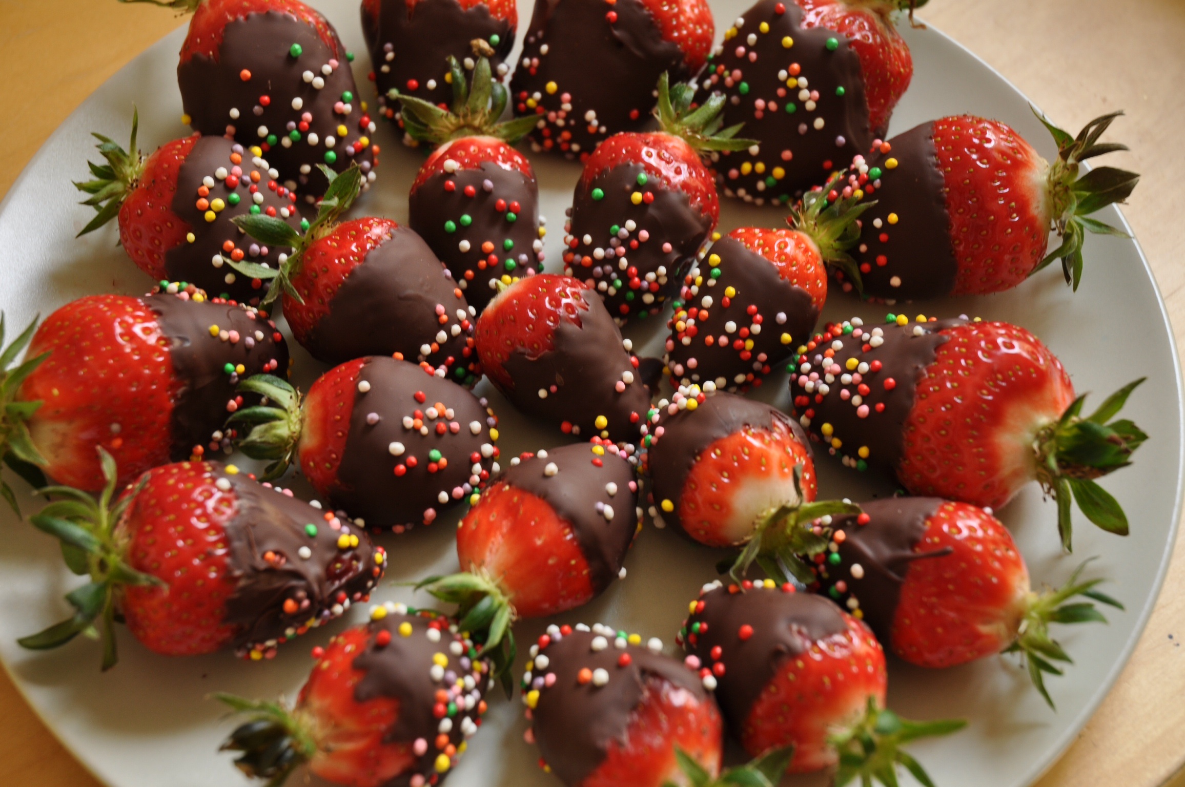 just try dressing up strawberries with dark chocolate and sprinkles…